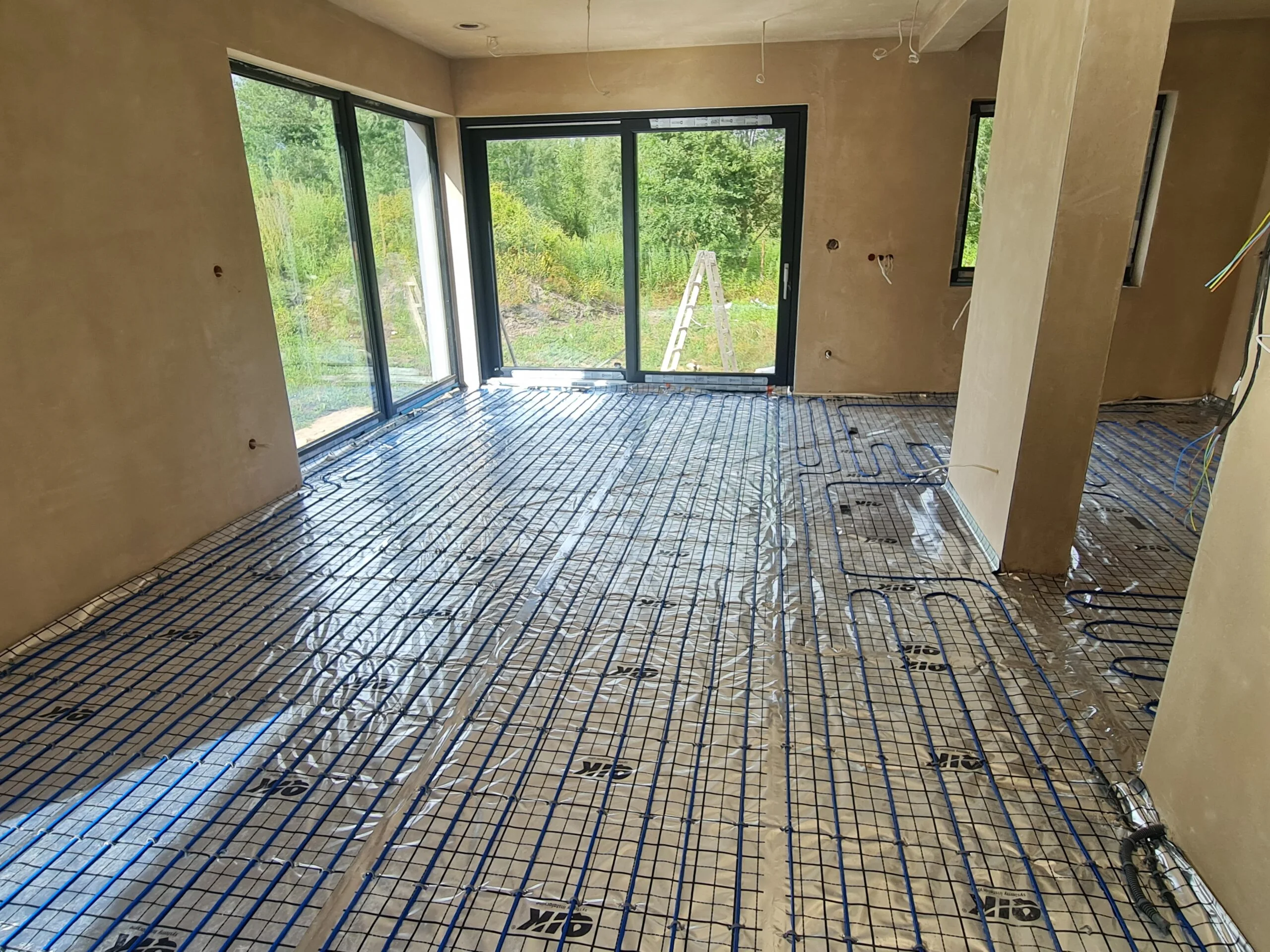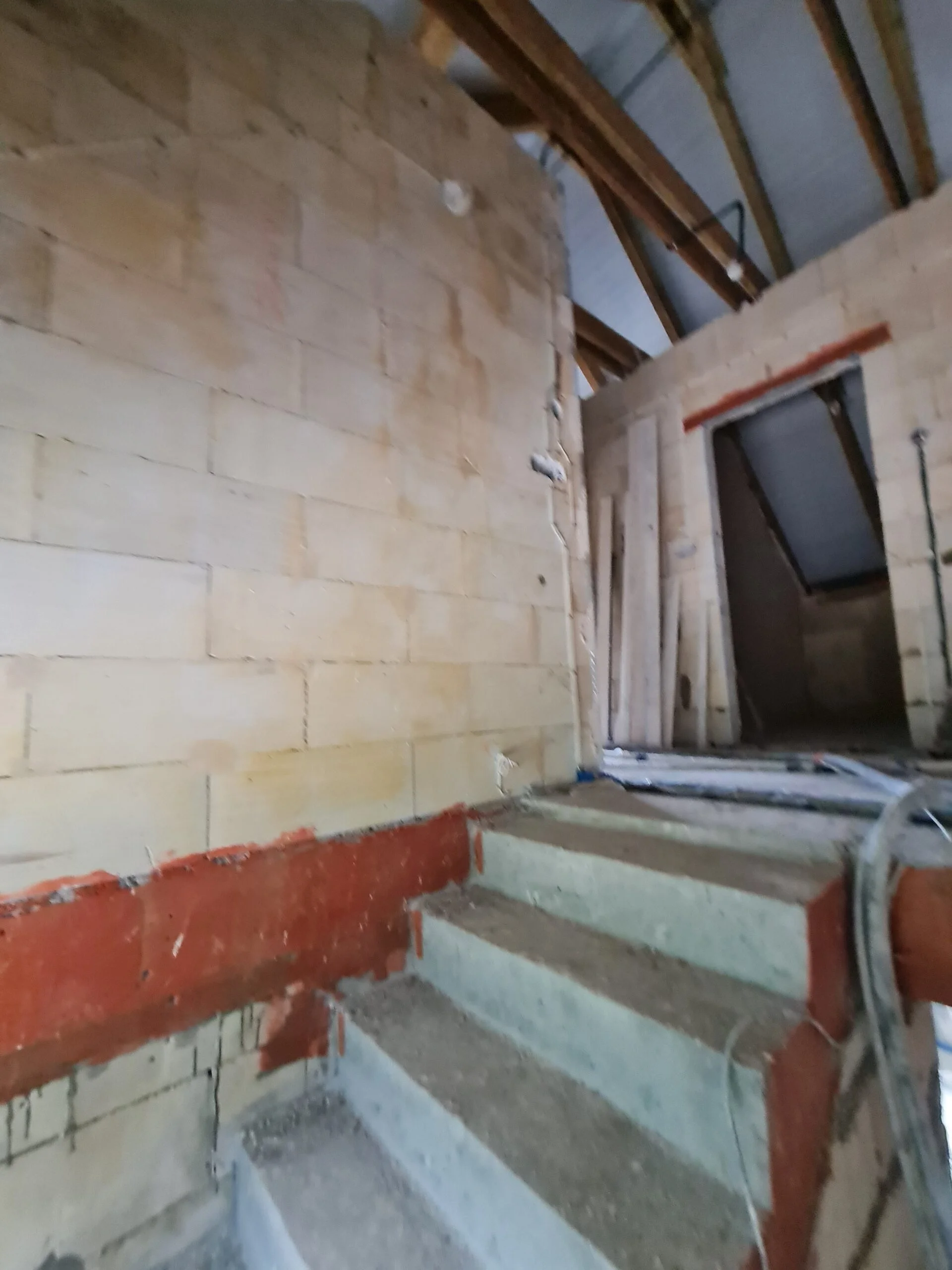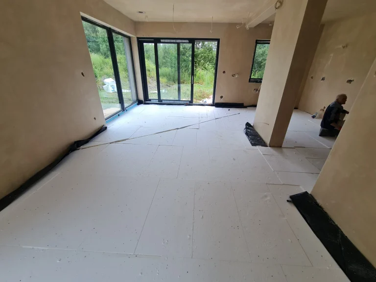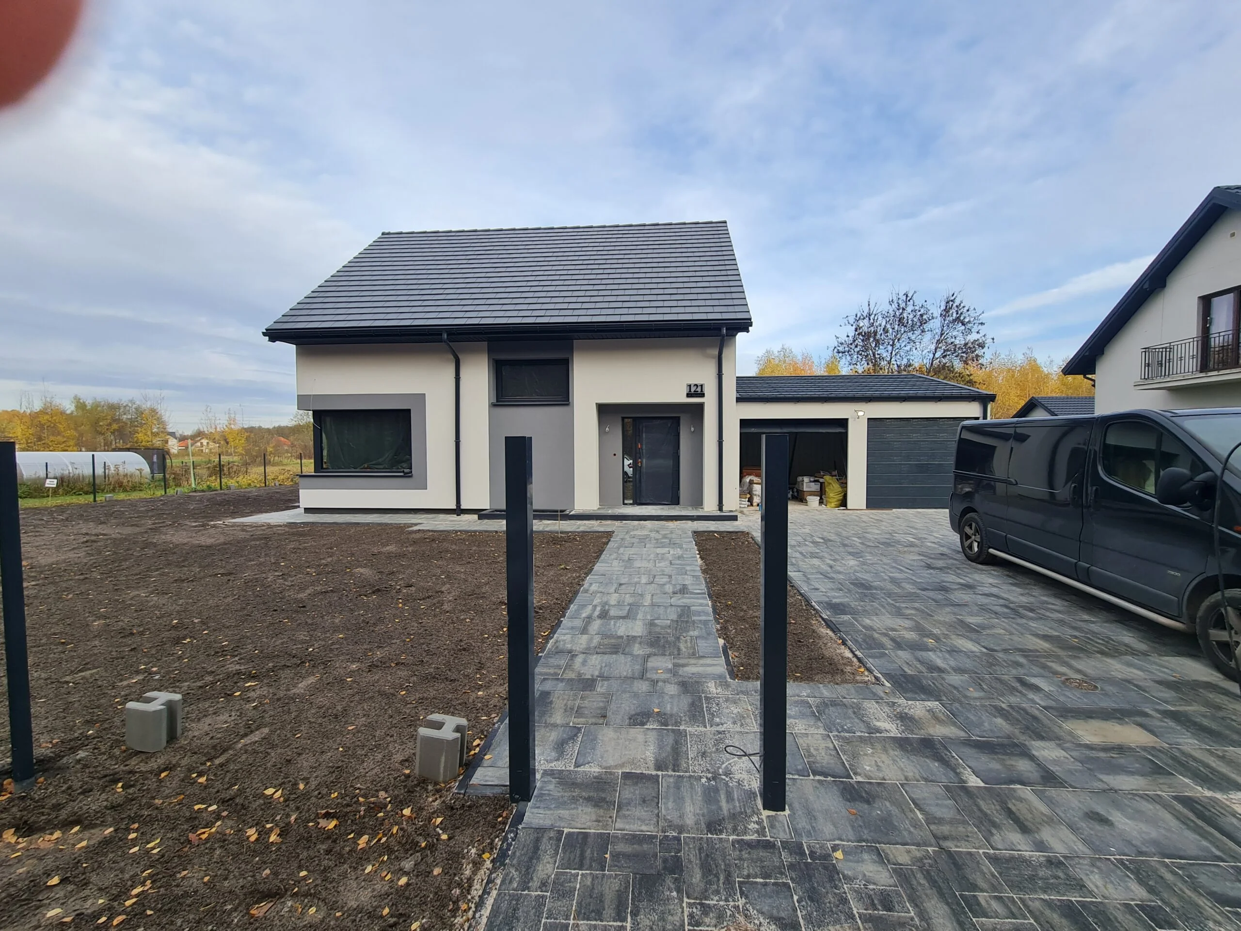 Nach Durchführung der notwendigen Vorarbeiten wurde eine 15 cm starke bewehrte Fundamentplatte mit einer 15 cm starken energiesparenden Styrodurdämmung hergestellt. Die tragenden und die Trennwände des Gebäudes wurden aus Porenbeton gebaut. Teriva 24 Decke. Der Dachstuhl wurde auf traditionelle Weise hergestellt und das Dach mit flachen Betonziegeln in Graphitfarbe gedeckt.